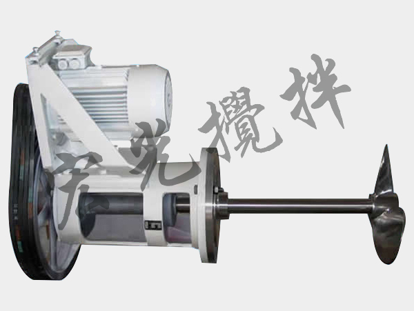 驅(qū)動(dòng)裝置采用普通電機(jī)或防爆電機(jī)直接通過皮帶輪驅(qū)動(dòng)裝置與攪拌軸聯(lián)接。攪拌軸由雙向推力軸承和水潤(rùn)滑滑動(dòng)軸承支承,具有足夠的強(qiáng)度和剛度,并具有好的穩(wěn)定性。