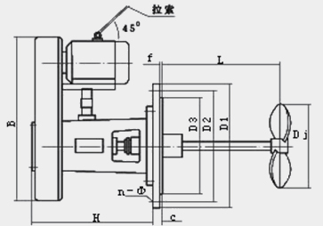 攪拌機(jī)型號(hào) | 電機(jī)功率 | 攪拌機(jī)轉(zhuǎn)速 | 攪拌器直徑 | 安 裝 外 型 及 尺 寸 | 攪拌容量 | 重量 | ||||||||