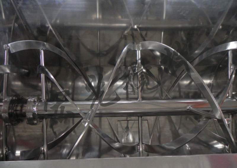 4、正反旋轉(zhuǎn)螺條安裝于同一水平軸上,形成一個(gè)低動(dòng)力高效的混合環(huán)境。平穩(wěn)的混合過(guò)程降低了對(duì)易碎物料的破壞,加裝飛刀結(jié)構(gòu)亦起破碎作用,亦可加裝噴液系統(tǒng)。將液體和粉體充分均勻混合。