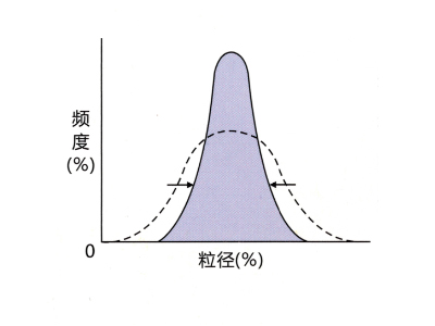 粒度分布![]() 相比傳統(tǒng)磨機(jī),即使在相同的平均粒徑,它可以得到集中的粒度分布。 |